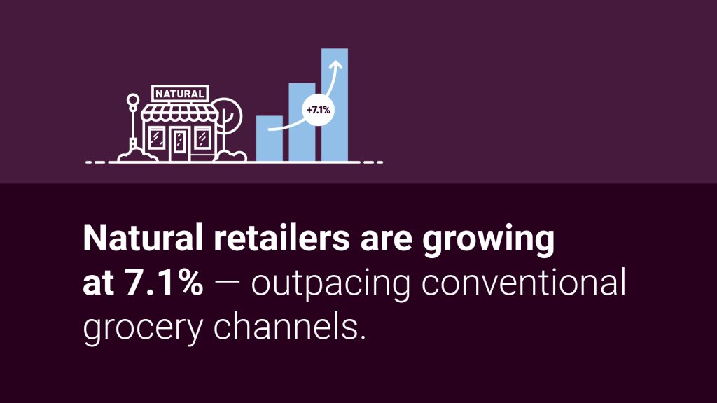 SPINS data shows natural retailers growing at 7.1%, outpacing convenience, drug, mass, and conventional grocery channels.